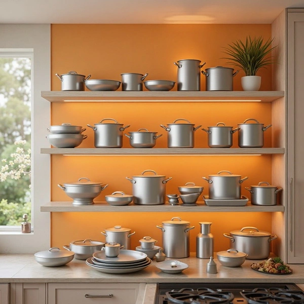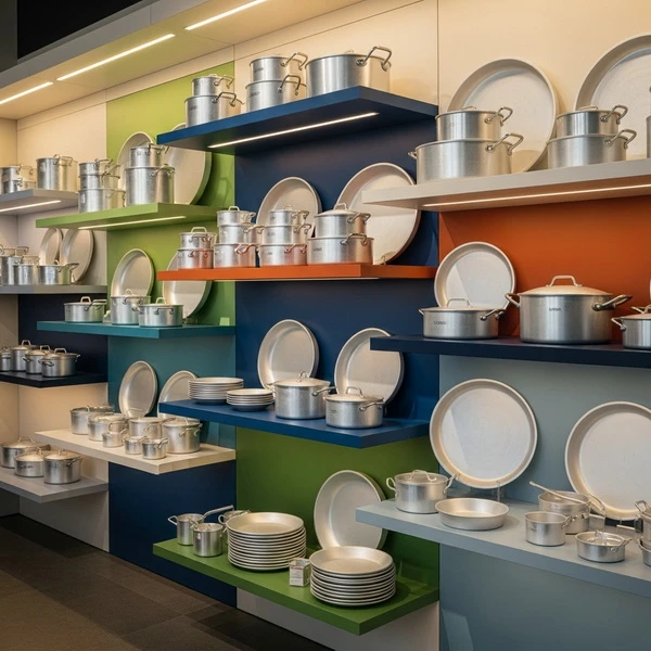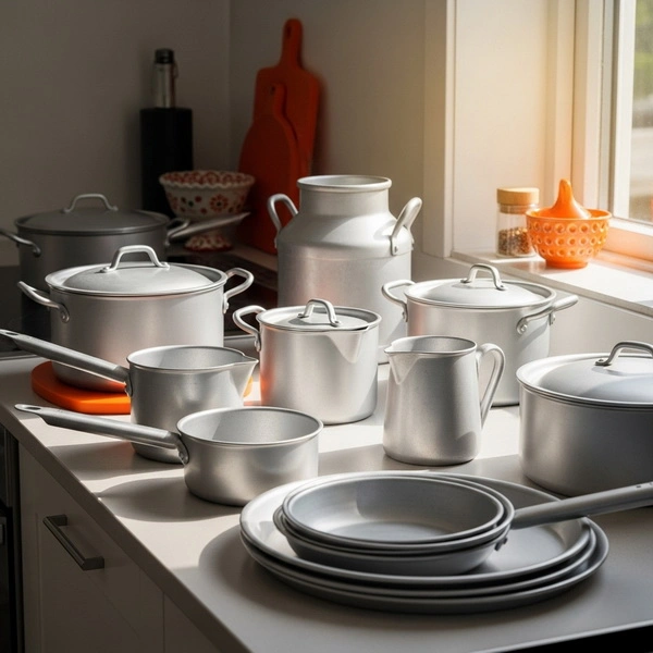 Our range includes aluminum pots, pans, trays, casseroles, saucepans, teapots, coffee pots, and pizza trays — all available in various shapes and sizes.