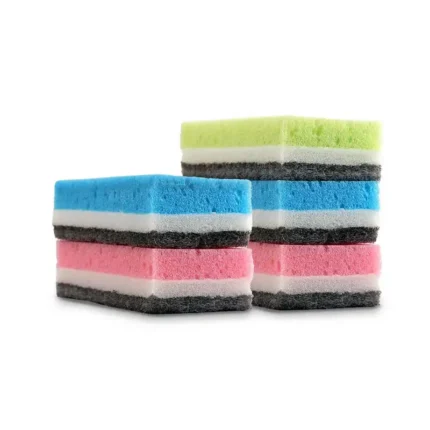 Kleaner Scouring Pad is very convenient to use for washing glasses, because its width is slimmer than the ordinary Dishwashing Sponge, making it easier to wash the glass to the bottom. This product is sold in packs containing 5 pcs. The price listed is for 1 pack containing 5 pcs. In 1 pack, there are sponges that vary in color to make it easy to distinguish sponges for different glasses, for example for baby glasses, coffee cups and water glasses.
