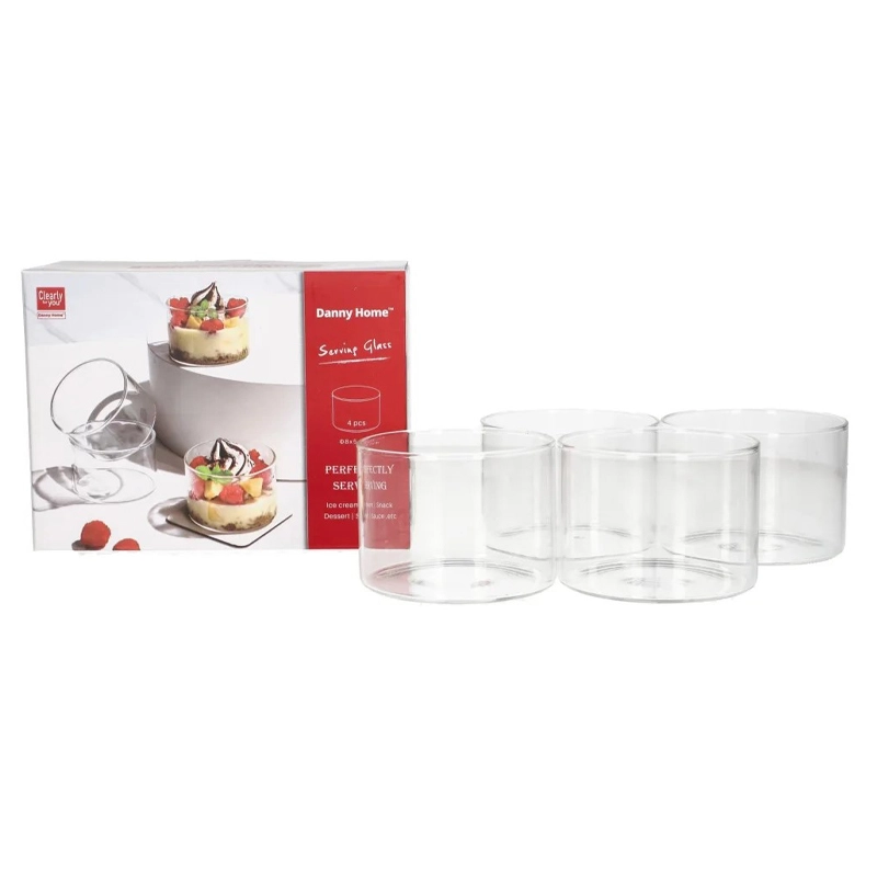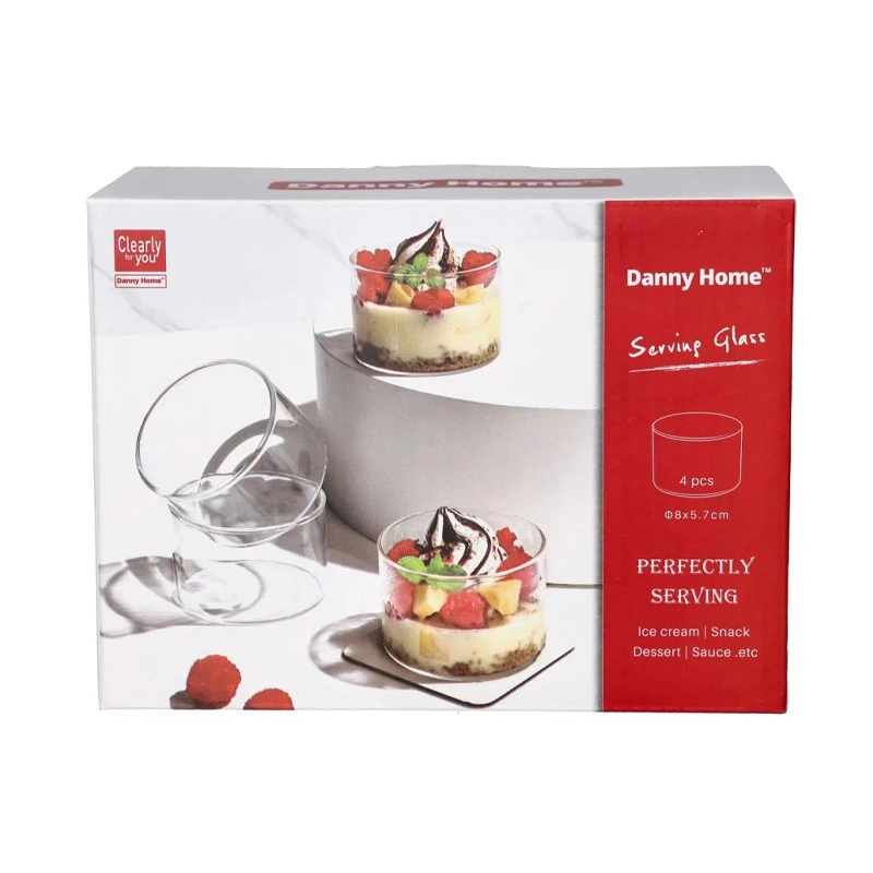 Dimensions: 4 x Dessert Glass Cups: 7.9cmx7.9cmx5.6cm.