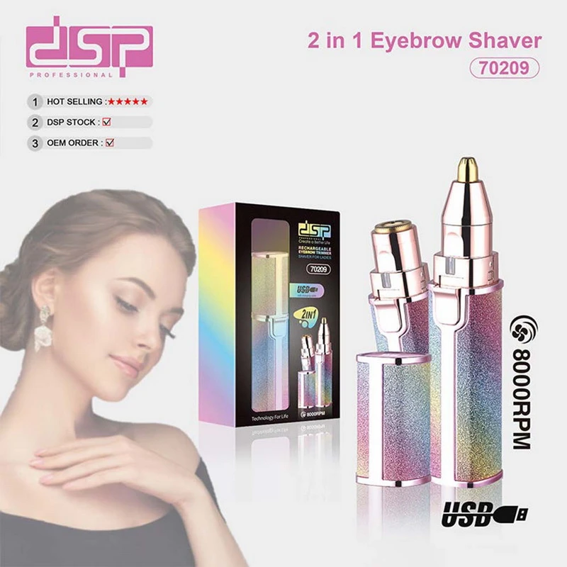 Accessories: shaving head + eyebrow trimmer + cleaning brush + USB charging cable