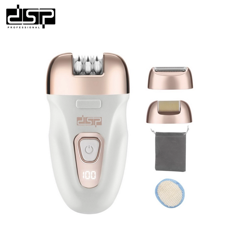 Accessories: epilating head, shaving head, dermabraser, USB cable, brush, bath towel, storage bag