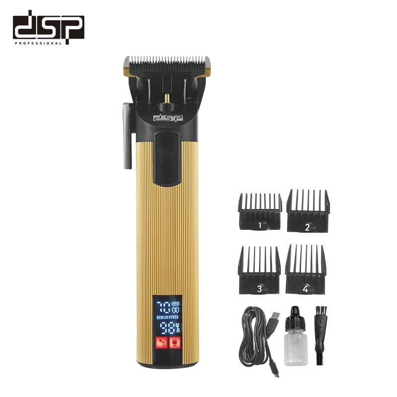 Accessories: four guiding combs (3mm, 6mm, 9mm, 12mm), lubricating oil, cleaning brush, USB charging cable