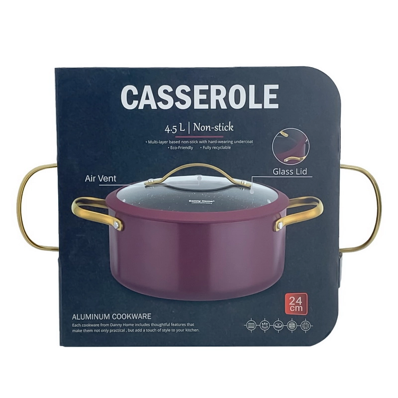4.5L Non-Stick Casserole with Glass Lid! Cook, Serve, Impress: Durable aluminum construction for even heat distribution PFOA-free non-stick coating for effortless food release Tempered glass lid for visibility and moisture retention 4.5L capacity for generous servings Induction, gas, and electric stovetop compatible Oven safe (up to 180°C) Dishwasher safe for effortless cleaning Elevate Your Cooking Experience: Perfect for slow-cooking, braising, and roasting Ideal for family meals, dinner parties, and holiday gatherings Stylish design complements any kitchen décor