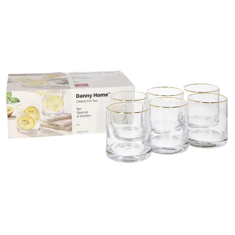 Material: Glass. Colour: clear with golden rim.