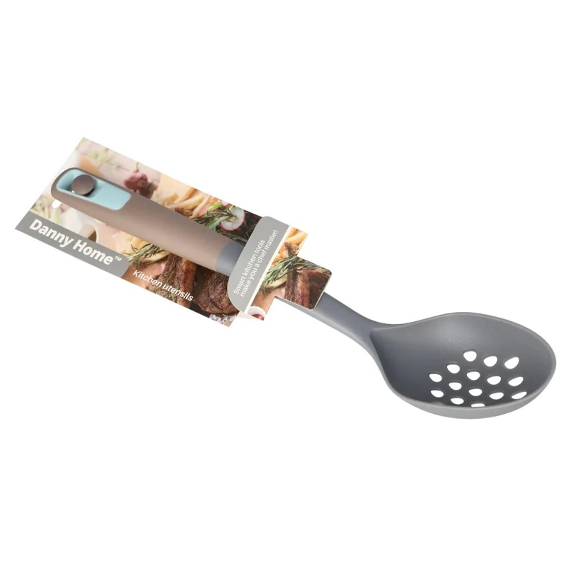 The beautiful and elegant Nylon Slotted Strainer Spoon, is non-toxic, non-stick, heat resistant, functional and durable. With silicone handle for superior protection and comfortable grip when handling hot cookware.