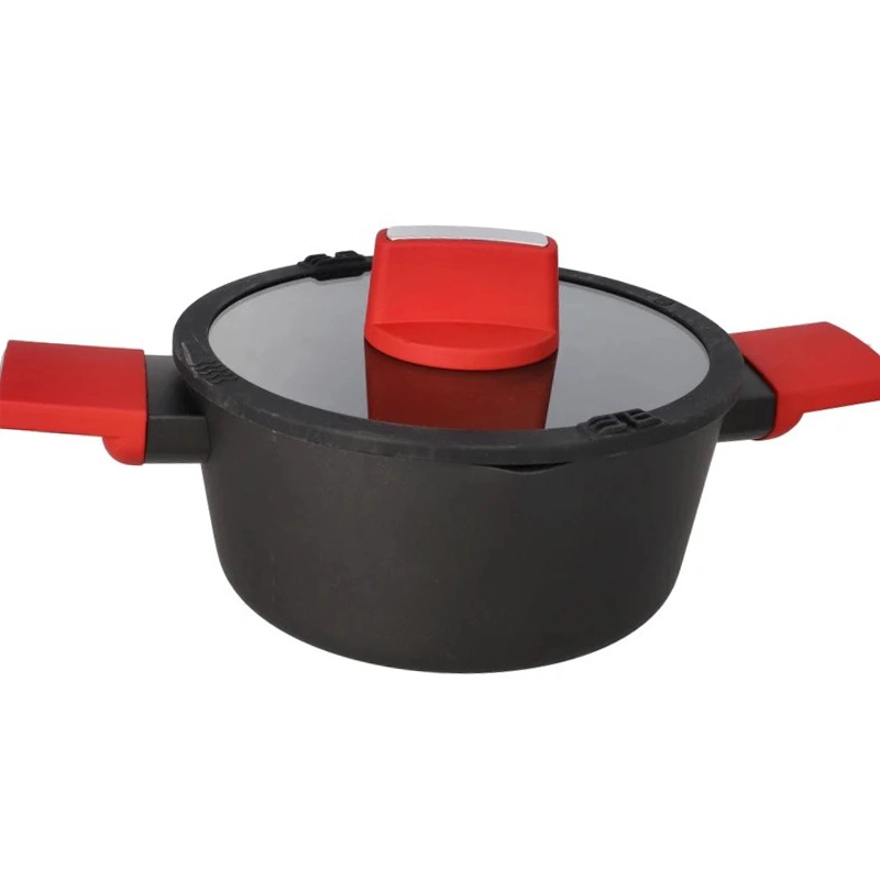 – Durable non-stick cookware Dutch Oven with a transparent glassware lid and wooden handles. Power glide non-stick coating. Easy clean and cooking.