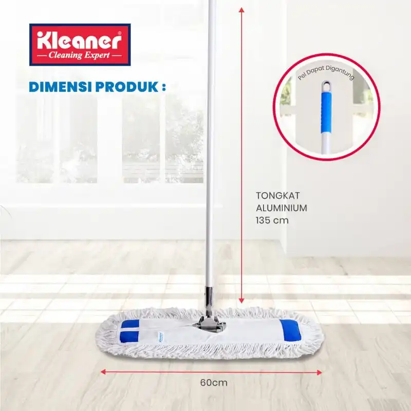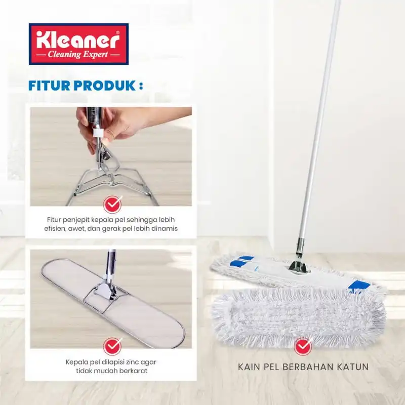 Kleaner Lobby Duster Mop uses premium materials, with an anti-rust Aluminum stick and cotton cloth. The Kleaner Lobby Duster mop head system uses a clamping system which makes this product more durable because it doesn’t break easily when compared to other products.