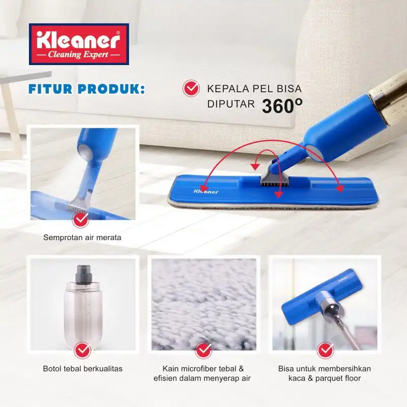 With Kleaner Spray Mop, you don’t have to carry a bucket when mopping. Simply by pulling the lever on the handle, water will spray out evenly.