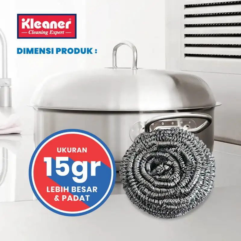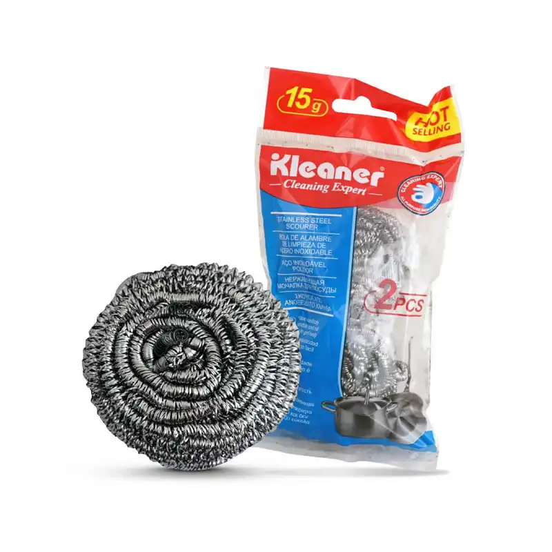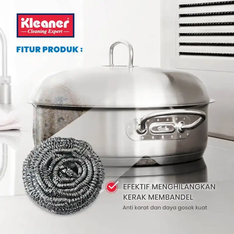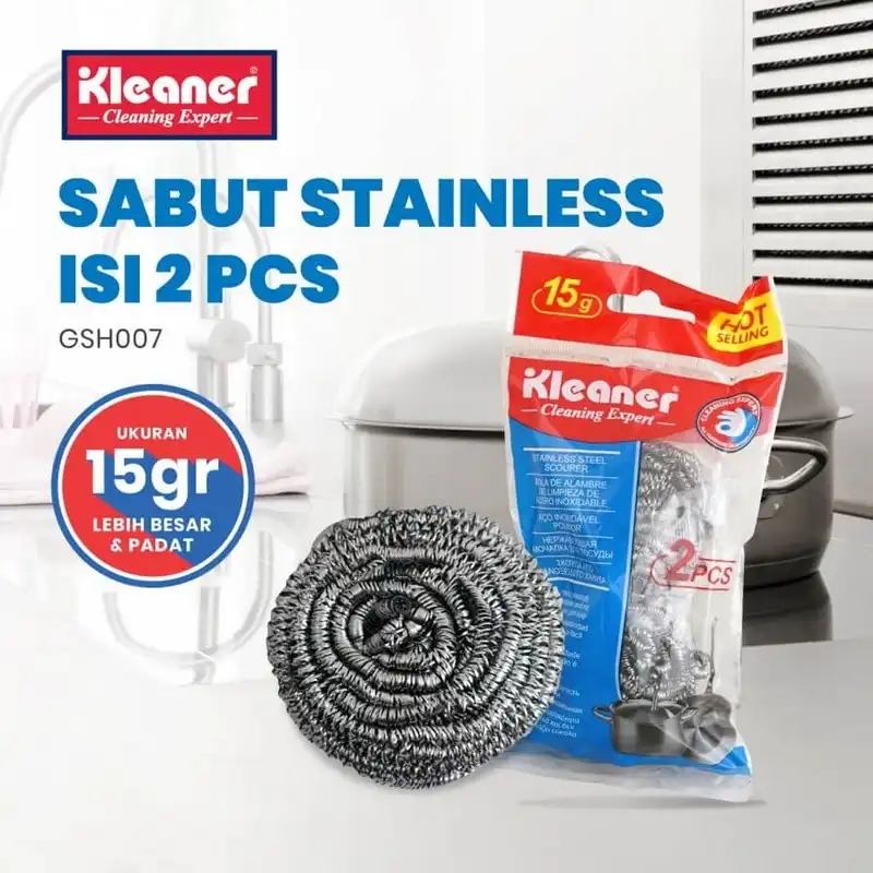 Kleaner Stainless Scourer 2 pcs is coir made of stainless steel which is suitable for cleaning stains / scale on pans, tableware, sinks and others. Stainless steel is thick and comfortable to grip because it weighs 15 Grams.