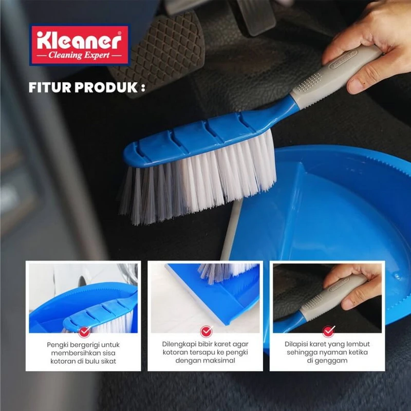 Kleaner Brush and dustpan can be used to clean dirt / dust from car interiors, floors, furniture, sofas, and others. The handle is equipped with a rubber grip for a more ergonomic and comfortable grip.