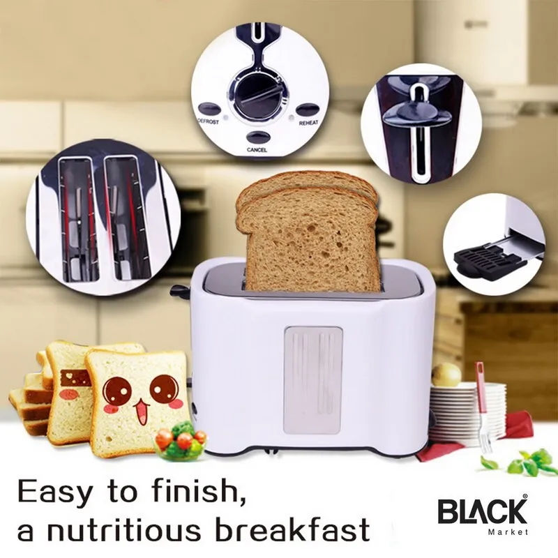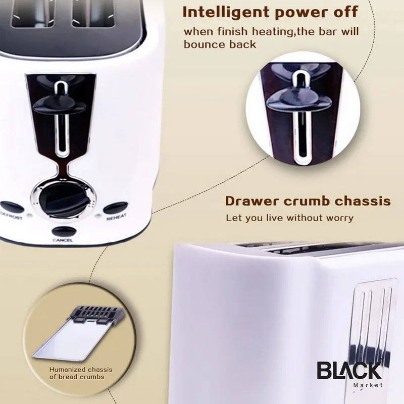 - Slide out crumb tray easy to clean