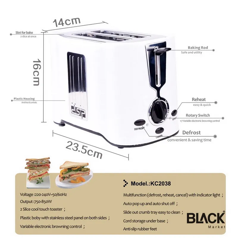 - 2 slice cool touch toaster