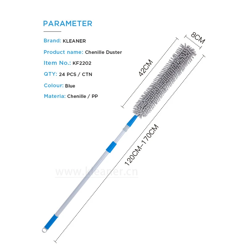 a versatile extendable duster reaching up to 174cm for effortless high-reaching cleaning. Crafted from soft, durable, and non-shedding material, this duster is washable for convenience and hygiene. Ideal for ceilings, light fixtures, and more, it combines efficient cleaning with durability, making it a must-have cleaning tool for your home. Try this convenient and practical duster today!