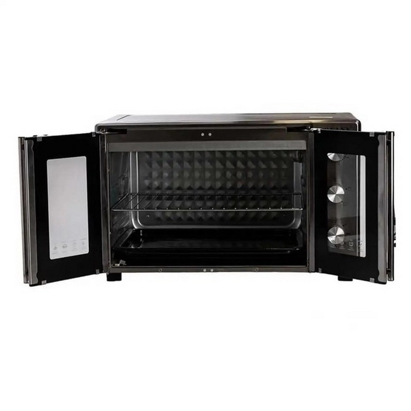 - Design: A tabletop design with two doors, an internal light, and a transparent window for viewing the cooking process. Internal coating: Features an internal non-stick enamel coating.