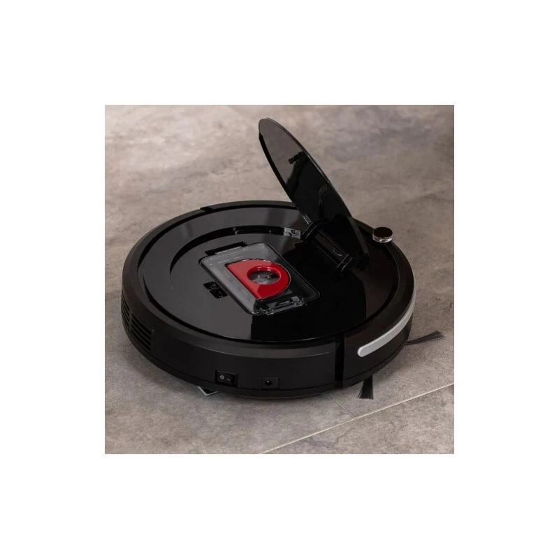 Control: remote control (remote control) Number of cleaning modes: 4 Battery capacity: 1500 mAh Working time on one charge: 80 min Charging time: 5 hours Dust collector volume: 200 ml Weight: 1.9 kg High-quality cleaning even in hard-to-reach places. Two side brushes and a microfiber cloth help efficiently remove dust, sand and animal fur from hard surfaces and carpets. The vacuum cleaner is equipped with an advanced navigation system, thanks to which it builds ideal paths for efficient and fast cleaning. The robot vacuum cleaner is controlled using a remote control, and there is an on/off button on the body. The device is equipped with a rather large battery, designed for 60 minutes of continuous operation, thanks to which you can efficiently clean a room of 90-120 square meters. The vacuum cleaner is charged from the included power supply unit.
