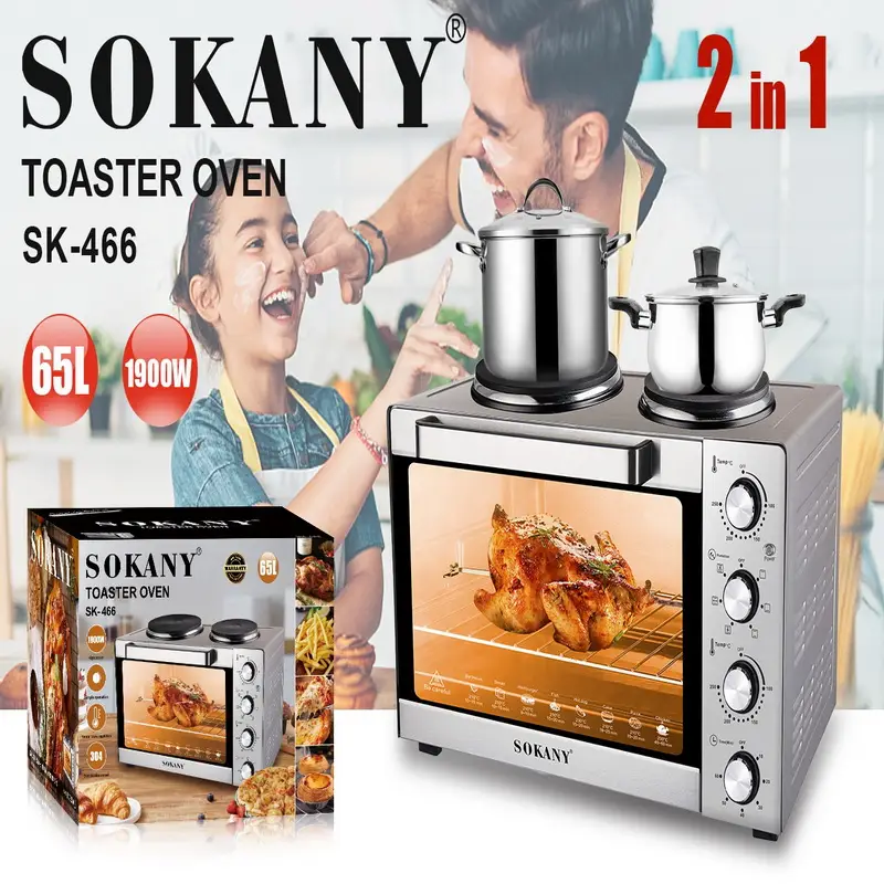 - Accessories: Typically includes a bake pan/tray, a wire rack/grill, and a rotisserie spit/track.