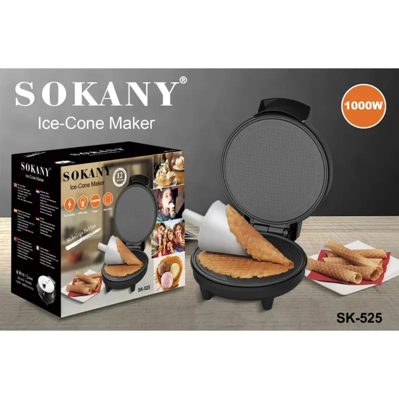 The SOKANY SK-525 Ice-Cone Maker is equipped with a non-stick coated plate, making it easy to remove the freshly made ice cones without any sticking. It also features a thermostat control, allowing you to adjust the temperature according to your preference for perfect ice cones every time. This convenient appliance is a must-have for anyone who enjoys delicious homemade ice cones.
