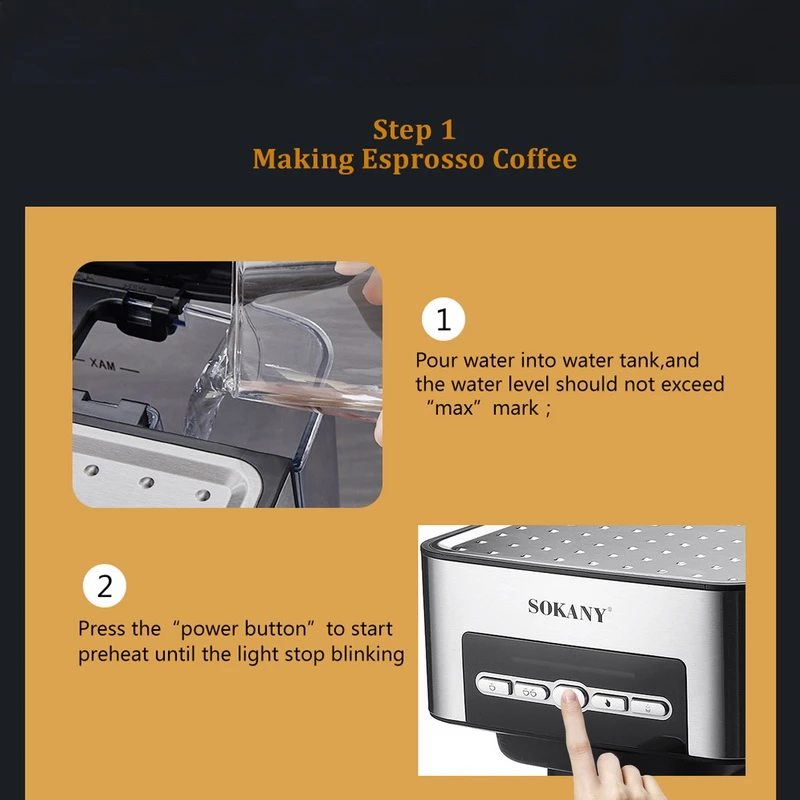- Typically, Sokany espresso machines like the SK-6862 come