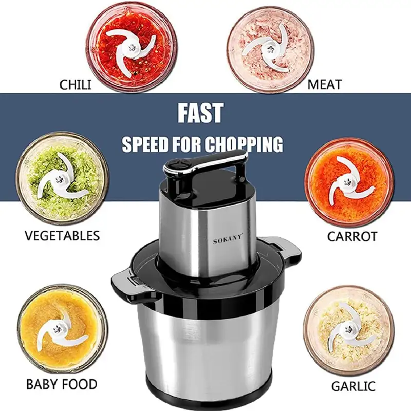 The SOKANY SK-7088 Electric Chopper Blender features a powerful 1500W motor, perfect for effortlessly blending and chopping ingredients. With a generous 8.0L capacity, this appliance is ideal for preparing large batches of food. Its sturdy construction and efficient performance make it a must-have kitchen essential for home cooks and professional chefs alike.