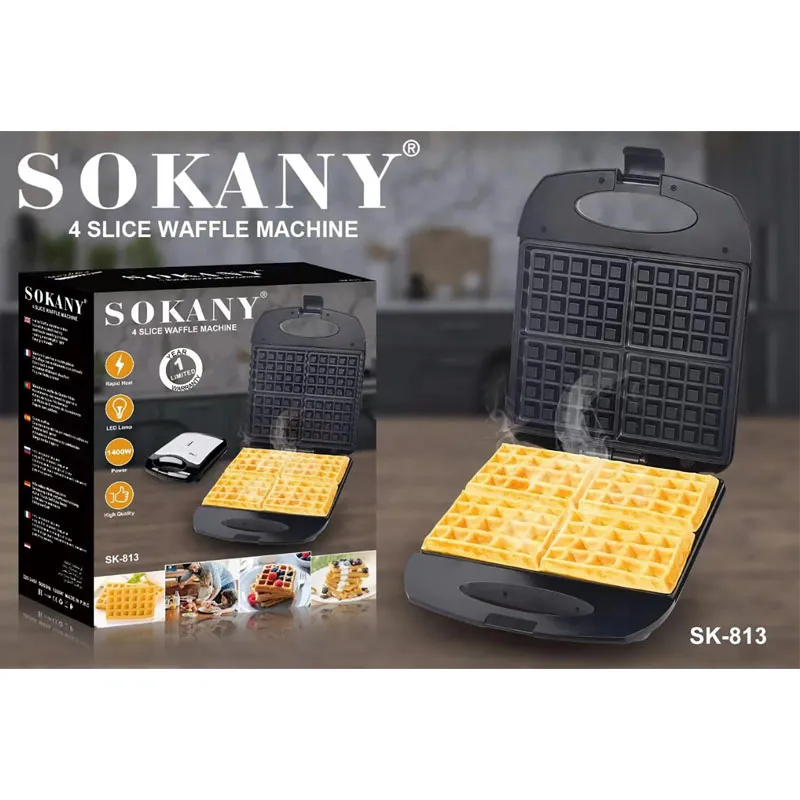 SOKANY SK-813 is an excellent choice for those who value quality and convenience when preparing delicious waffles. This model from the SOKANY brand offers reliable and efficient waffle cooking thanks to its powerful electric motor and high-quality stainless-steel molds. The waffle maker is equipped with convenient functions, such as temperature control and a timer, which allows you to easily control the cooking process and achieve the perfect result. Its compact size and stylish design make this device an excellent addition to any kitchen. Wafelnitsa SOKANY SK-813 is an ideal choice for those who want to enjoy fresh, aromatic waffles at home.