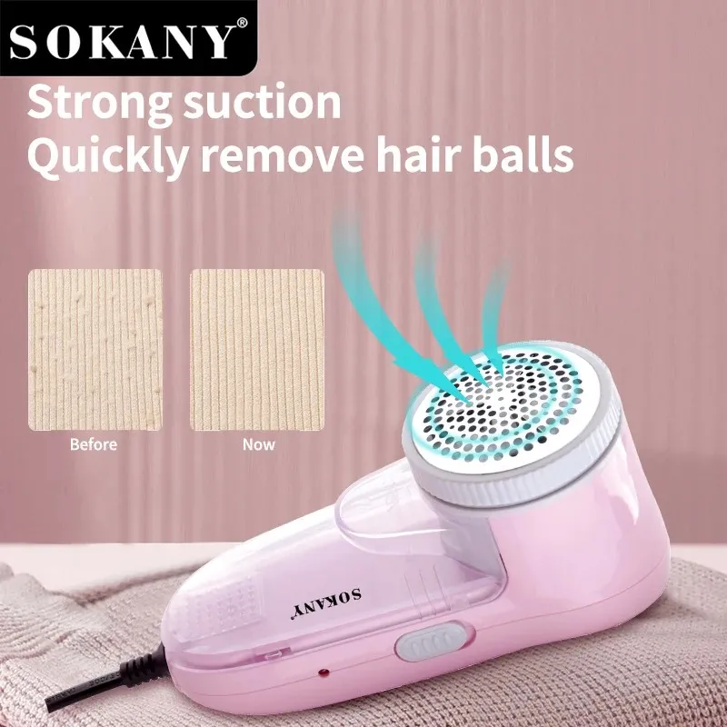 The Sokany SK-877 is an electric lint remover and fabric shaver that efficiently removes pills and fuzz from various garments, including wool, cotton, and upholstery. Key features include an extra-large shaving surface, a large removable lint container, and a triple-blade system. It is available in both corded and rechargeable versions, is compact and portable, and is easy to use and maintain.