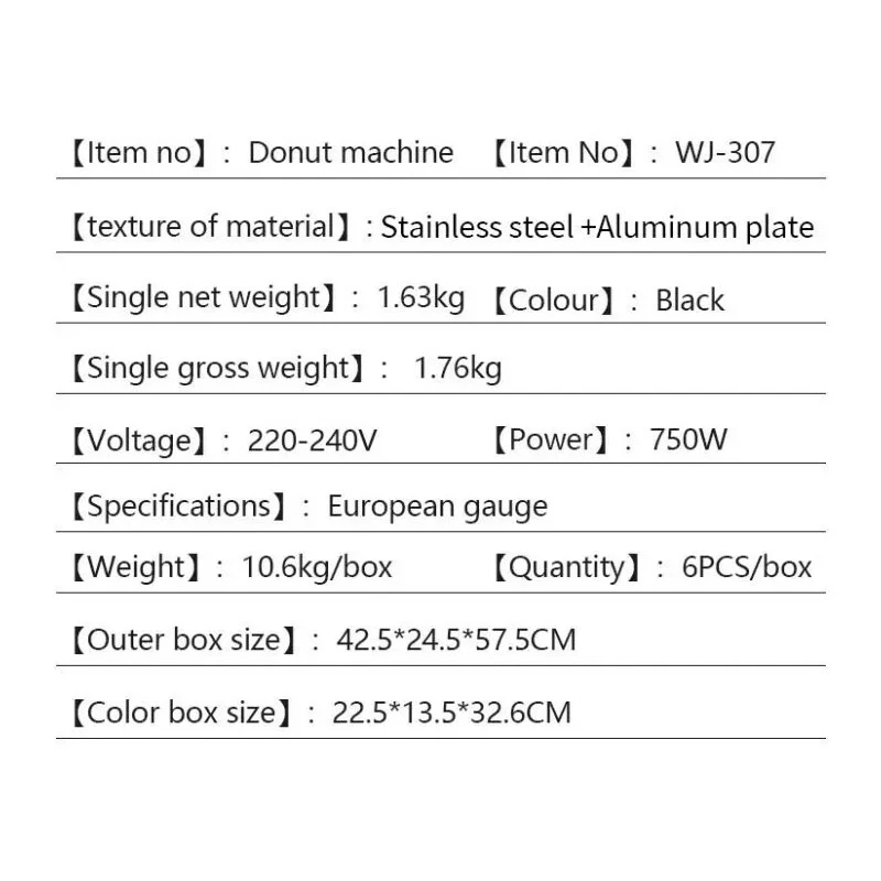 This donut machine features a non-stick coated plate for easy cooking and cleaning. The heat-insulated handle ensures safe operation, while the two control lights indicate power and heating status. It offers high stability through rubberized feet, and the built-in overheating protection ensures safety during use. Operating at 220-240V,50/60Hz with a power output of 750W, it provides reliable and efficient performance for making delicious donuts.